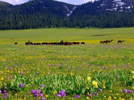 14:30-19:30那拉提镇用午餐(餐标40元/人),午餐后前往【那拉提草原】是中国四大高山草原之一,坐区间车1小时抵达进入空中草原,游玩3-4小时,那拉提5-7月到处可见各种野花,广袤无垠的大草原,畅游在绿色的海洋里,拿出您的相机及拍摄用具尽情自拍留下美好的景色留念;