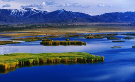 林和草地切分成一块块似连似断的小岛,人称神仙湾。春夏时节,湖水会随着季节和天气 变化而变换颜色。