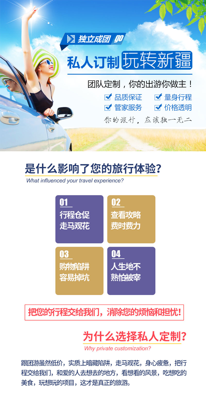 3.三重保障:旅行社签约正规旅游车队,统一监督管理,服务、安全有保障且价格优惠。