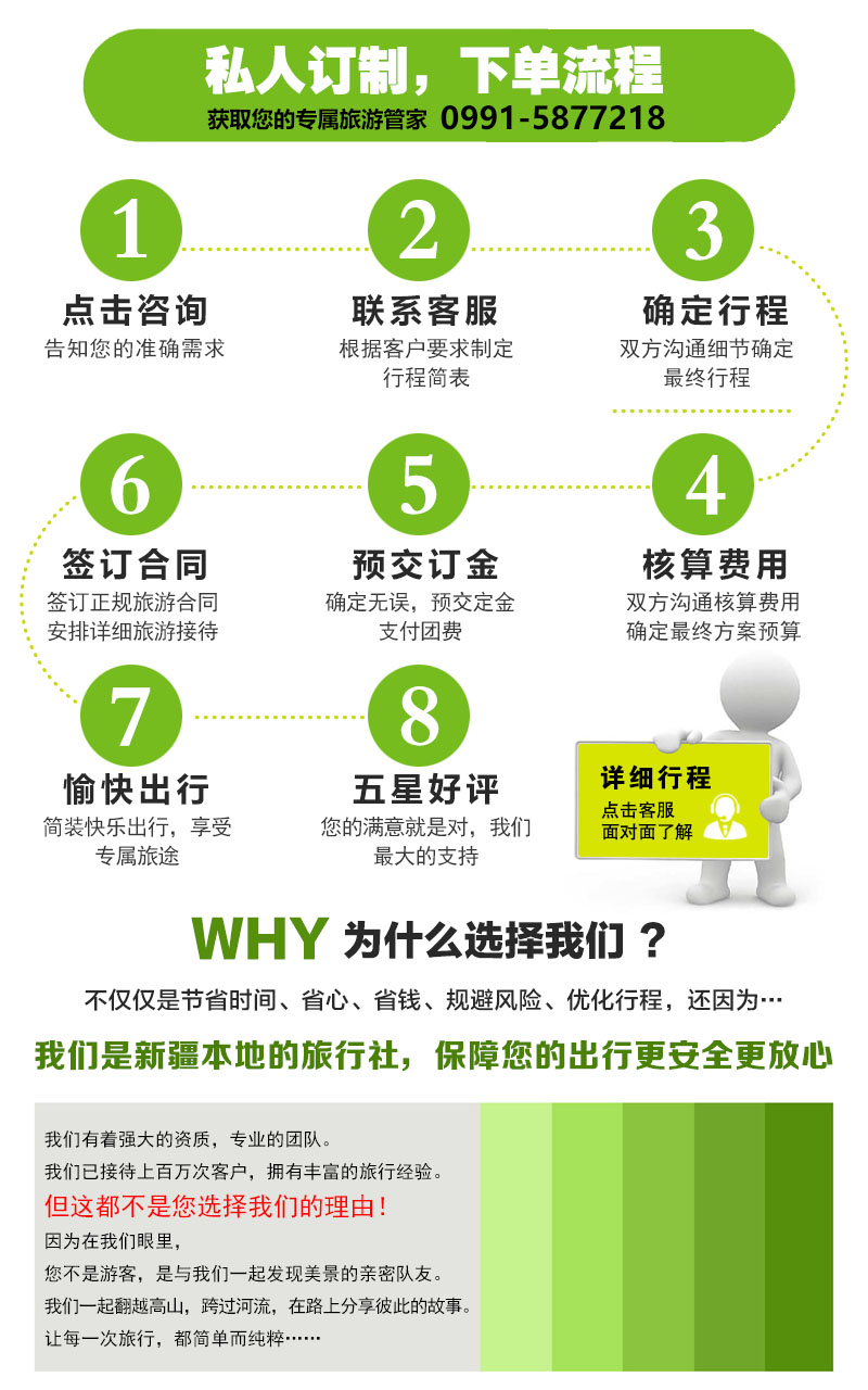 2.二重保障:驾龄10年以上熟悉新疆各景区路线并经自治区旅游局培训的的专业旅游司机为您热情服务。