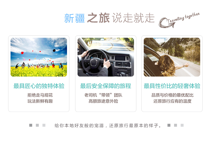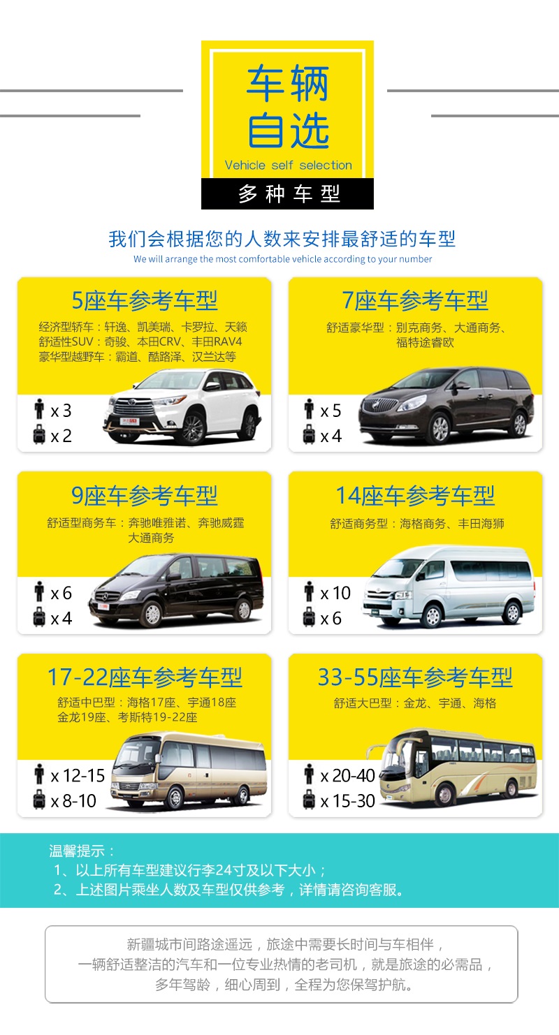2.二重保障:驾龄10年以上熟悉新疆各景区路线并经自治区旅游局培训的的专业旅游司机为您热情服务。